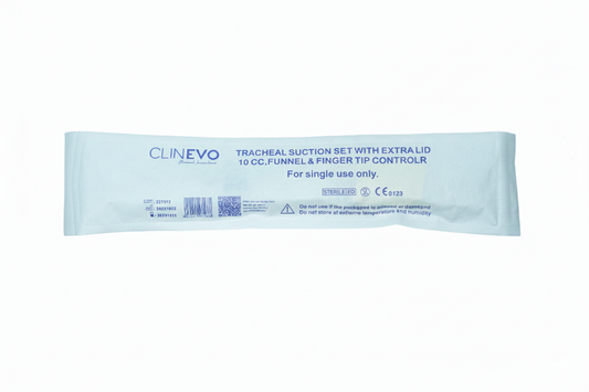 Professional-grade Clinevo Tracheal Suction Set for rapid and sterile airway clearance. Includes 10 CC collection capacity, funnel connector, and finger tip control for precise suction regulation. Essential single-use kit for ICU and post-intubation care. The Clinevo Tracheal Suction Set is an indispensable, all-in-one solution designed for the safe and effective...