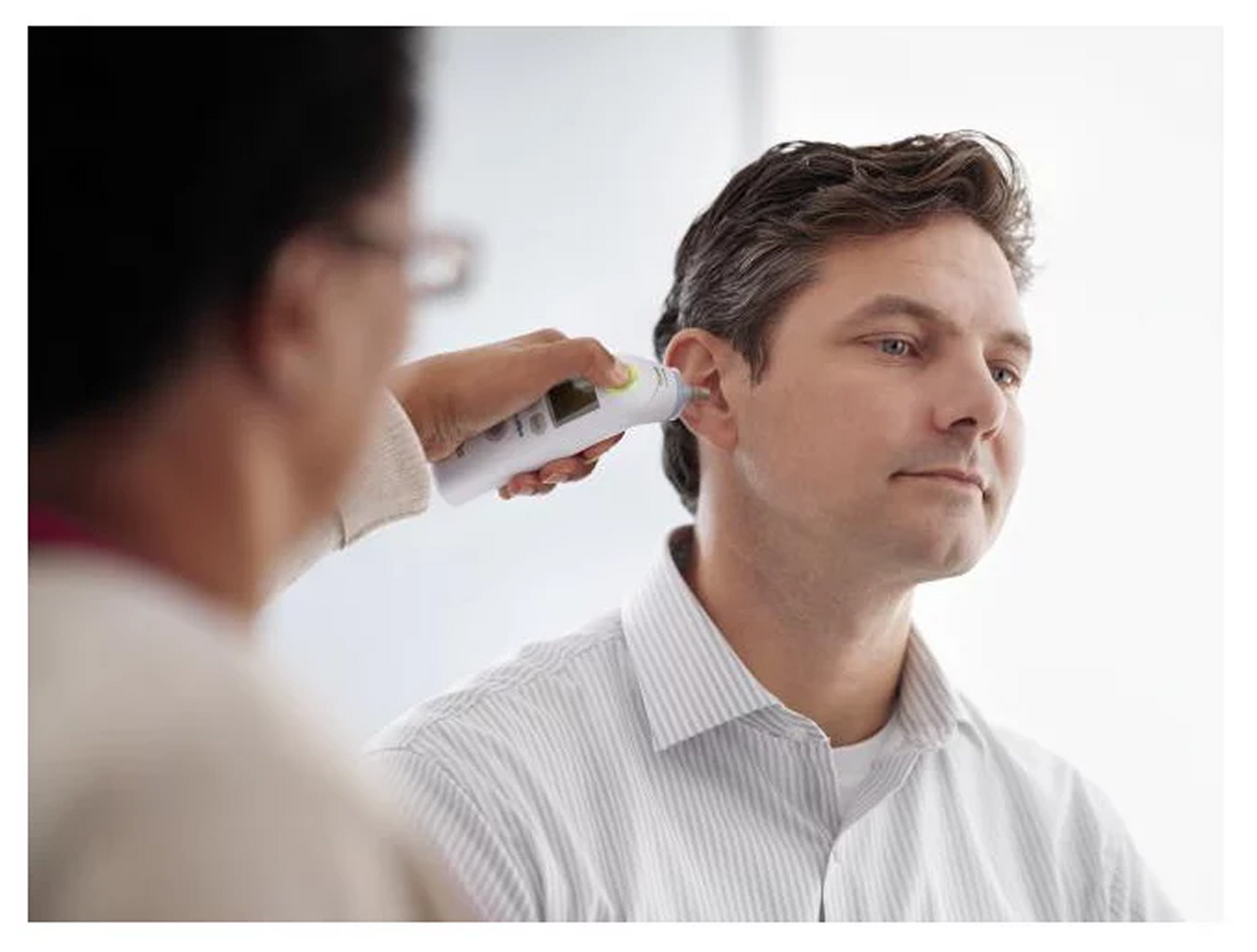 The Braun ThermoScan PRO 6000 Ear Thermometer, manufactured by Welch Allyn, delivers fast, accurate, and non-invasive temperature measurement for clinical and professional use. Designed with ExacTemp™ positioning technology, the thermometer confirms proper probe placement before measuring to help ensure reliable and consistent results.