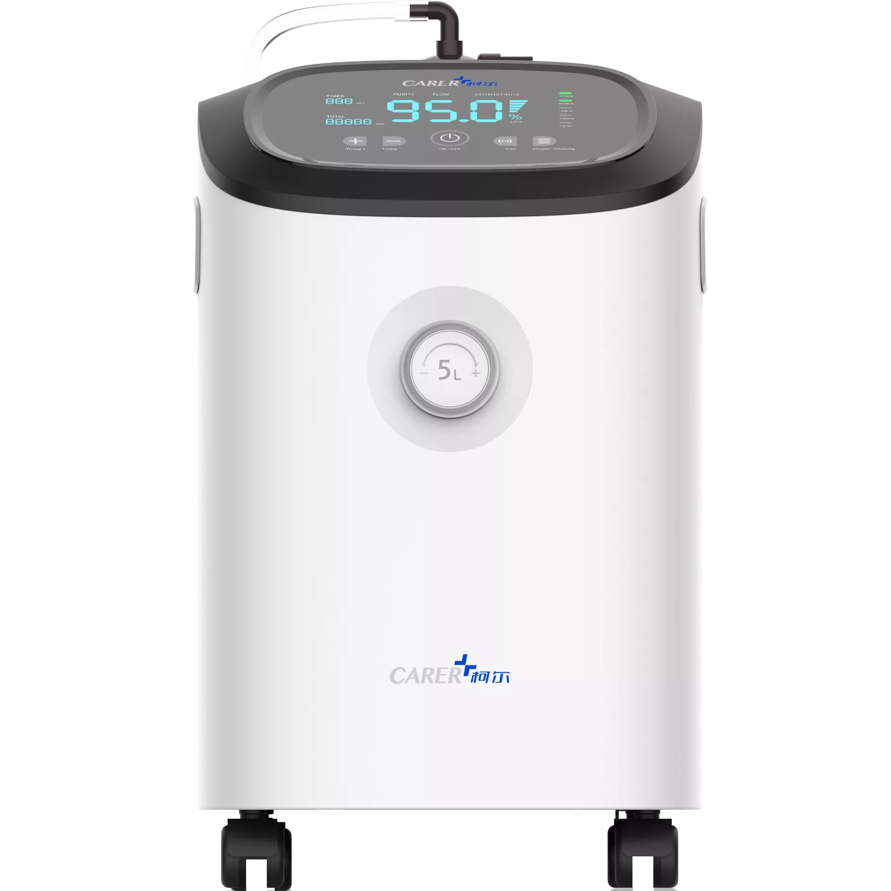 High Oxygen Concentration: Delivers a stable oxygen purity of 93% ±3% even at full 5L flow, ensuring the patient receives the exact prescribed therapy.