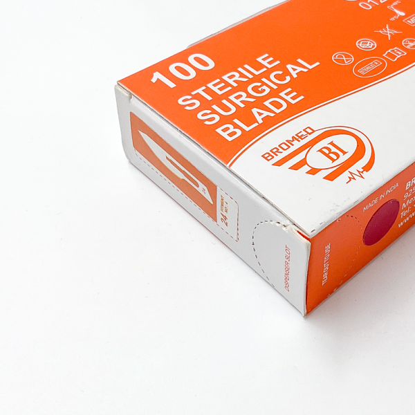 Bulk box of 100 BROMEQ Sterile Surgical Blades made from premium Carbon Steel. Guaranteed sharp and individually protected. Essential Scalpel Blades for surgical procedures, dermatology, and pathology. High precision.
